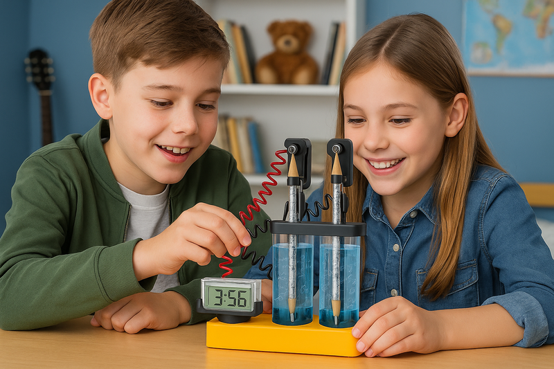 Φτιάξε το δικό σου Επιστημονικό Ρολόι και δες την επιστήμη να ζωντανεύει μπροστά σου! Με απλά υλικά από την κουζίνα – όπως αλατόνερο, αλουμινόχαρτο και μολύβια – θα δημιουργήσεις ηλεκτρική ενέργεια που θα τροφοδοτήσει ένα πραγματικό ψηφιακό ρολόι.
