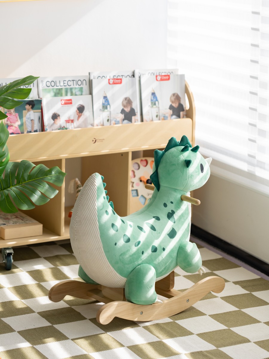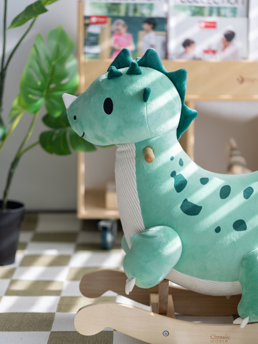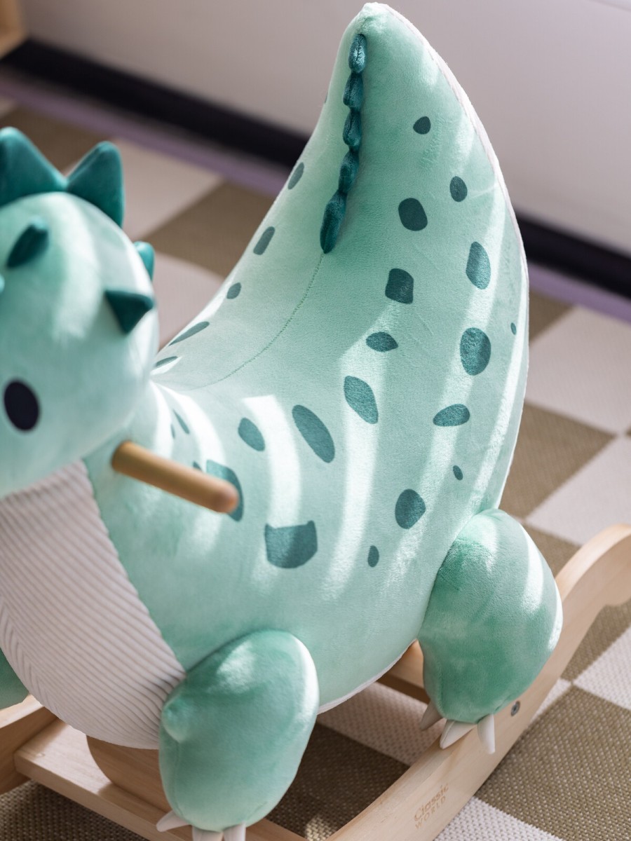 Αυτός ο χαριτωμένος ξύλινος κουνιστός δεινόσαυρος θα γίνει ο ιδανικός σύντροφος στις πρώτες βόλτες του μικρού σας μέσα στο σπίτι! Είναι κατασκευασμένος από βελούδινο ύφασμα, εξαιρετικά απαλό και άνετο στην αφή – ιδανικό για τα μικρά χεράκια των παιδιών! Ο σχεδιασμός του δεινόσαυρου είναι από τους αγαπημένους των παιδιών και υπόσχεται πολλές ώρες διασκέδασης με μια βόλτα! Παράλληλα, βοηθά στην ανάπτυξη της ισορροπίας και του συντονισμού καθώς τα παιδιά κρατούν τις λαβές και κουνιούνται μπρος-πίσω.