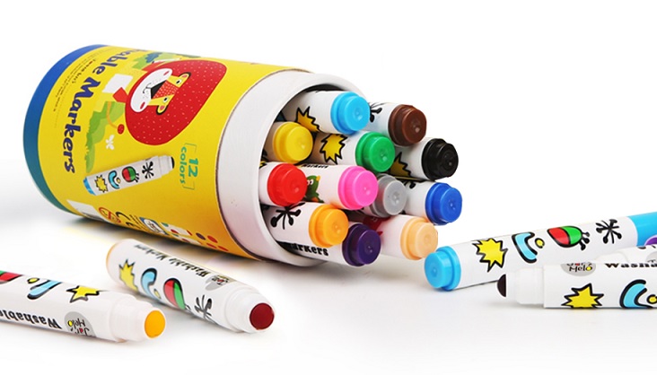- :: Μαρκαδόροι Baby Roo σετ 12 χρωμ. στρογγυλή μύτη Washable JarMelo